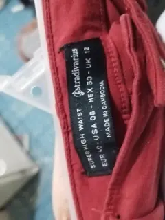 Pantalón corte Super High Waist, rojo. Pantalón corte Super High Waist, nuevo sin etiqueta, con tedalle de etiqueta de la parte trasera ligeramente descosido en color rojo