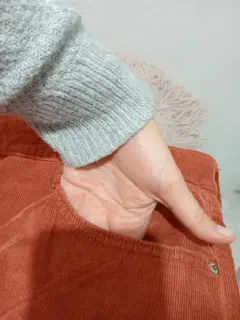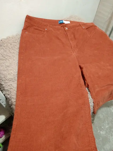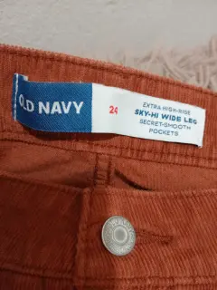 Tela de pana, color terracota, trae bolsas funcionales. Talla 24, es old navy
