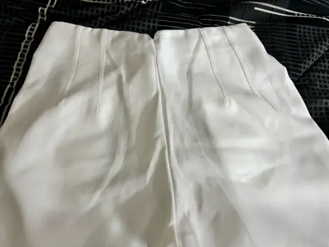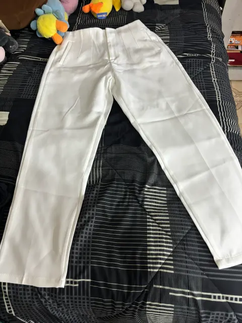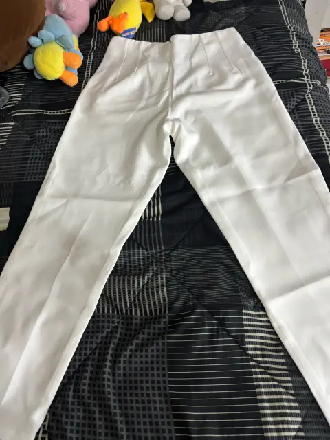 Pantalón de vestir a la cintura con pinzas. Pantalón de vestir tiro alto, a la cintura con pinzas color blanco 100% poliéster
