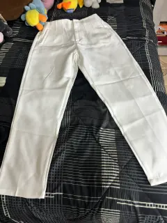 Pantalón de vestir tiro alto, a la cintura con pinzas color blanco 100% poliéster