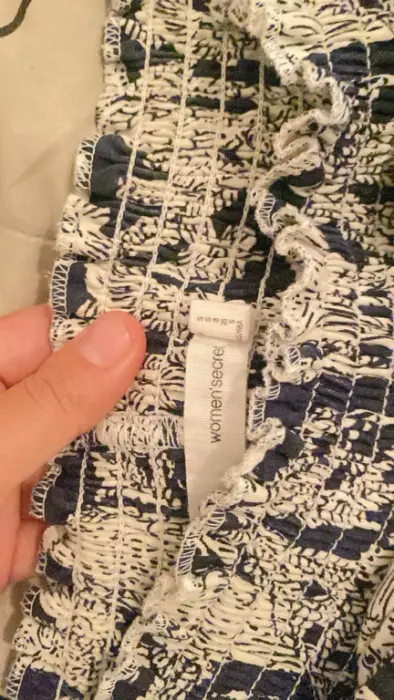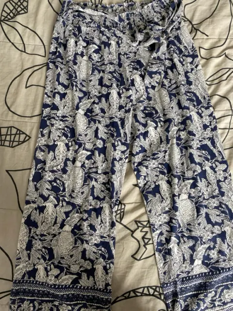 Pantalon con estampado de Flores azules flojo, perfecto para la playa.Talla chica marca women’s secret