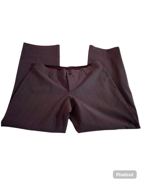 Pantalón gris oxford con rayas blancas, queda poco abajo de la cintura, con abertura para bota, viene totalmente forrado, con bolsas atrás, sin bolsas a los costadosTalla 10S (Petite) con las siguientes medidas:Ancho cintura: 41 CMSAncho cadera: 52 CMSLargo tiro a bastilla: 76 CMSPRENDA QUE TRAS UNA PUESTA ESTÁ EN EXCELENTES CONDICIONES