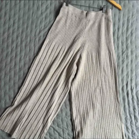 Pantalón punto color beige. Pantalón calientito de punto, tejido grueso, al tobillo, cintura alta con elástico y pierna ancha