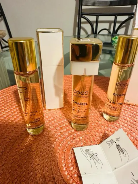 Chanel Coco Mademoiselle. Un ambarino de carácter afirmado y, sin embargo, de un frescor asombroso.En cabeza, las chispas de Naranja, vivas y frescas, despiertan los sentidos. El corazón claro y sensual desvela los acordes transparentes de Jazmín y de Rosa. La estela desarrolla acentos depurados de Pachulí y de Vetiver, que realzan la silueta estilizada de la composición.