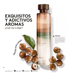Perfume Esika Ritualeza Avellana. Capacidad: 100 ml. Aroma oriental dulce que combina notas de avellana con frutas. Salida: Flor de pera, frutos rojos. Cuerpo: Marzipian accord, hojas de violeta, flor de naranja. Fondo: Vainilla, Hazelnut STT, Ámbar, madera de cedro, madera de sándalo.