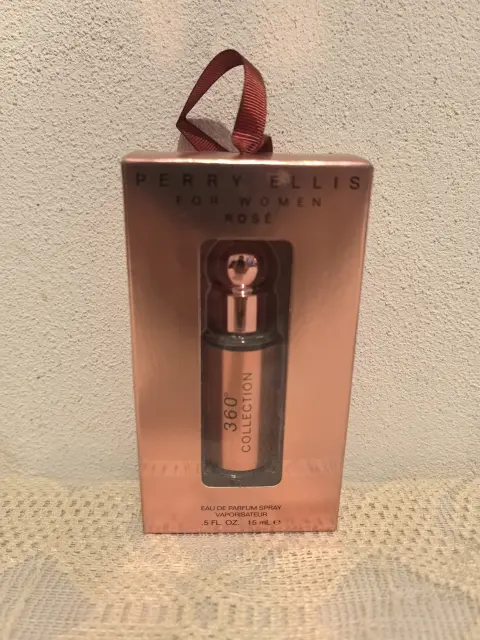Perfume Perry Ellis 360° collection Rose para dama, 15 ml.Notas a bergamota, pera, notas marinas.También puedes encontrar pétalos de jazmín, flores naranjas, hojas de violetas.