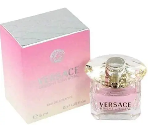 Perfume Original Nuevo Versace "Versace Bright Crystal"miniatura es para mujer, se permite transportar de forma discreta en tu bolso llevando un aroma con base en nota de ámbar extraída de plantas, almizcle y maderas rojas originario de Italia 😱
