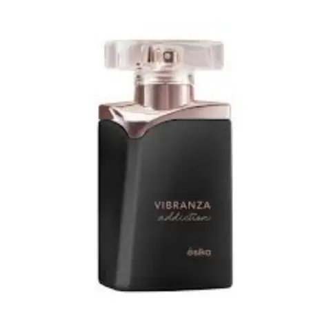 Perfume Vibranza Addiction Esika. Contiene elixir de pétalos de rosa, el exquisito licor de cassis y las exclusivas maderas oud, dando como resultado un aroma adictivo que deja huella.Contiene 45ml