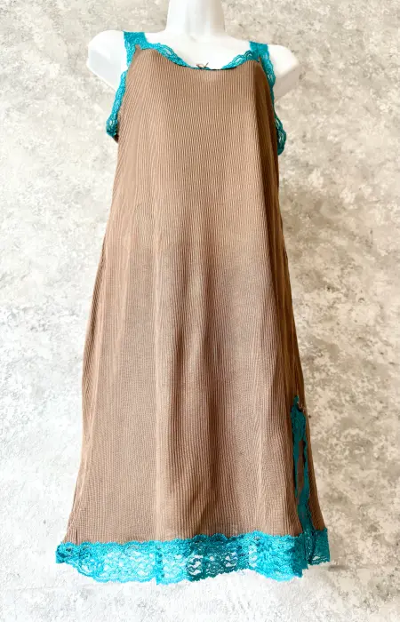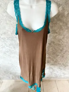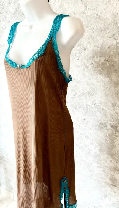 Camisón de Seda Mary Green. Camisón de seda de la exclusiva marca Mary GreenGreen, 100% seda natural, lo que lo hace increíblemente suave y ligero sobre la piel. elegante color café con delicado encaje turquesa. Ideal para noches especiales Marca reconocida por su lencería de lujo y ropa para dormir elaborada en seda, algodón de alta calidad y encajes finos. Mary Green es conocida como la “Reina de la Seda”