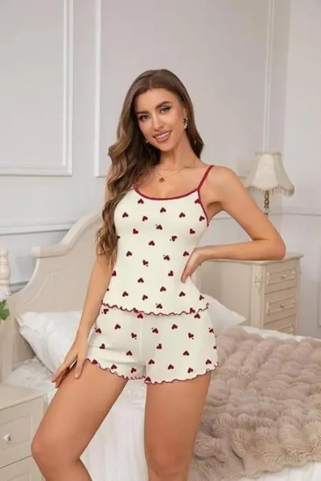 Pijama de corazones. Conjunto de pijama de 2 piezas para mujer, conjunto de pijama de verano lindo corto y pantalones cortos