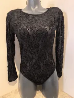 Bodysuit manga larga COSABELLA. Bonito bodysuit de la marca COSABELLA talla grande, transparente con áreas con terciopelo, botones de presión en la entrepierna.