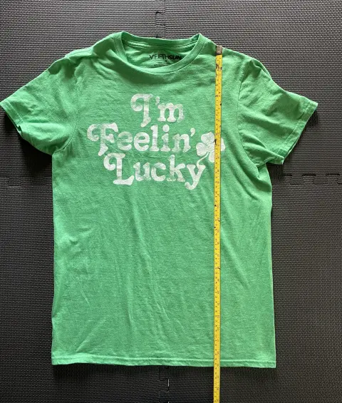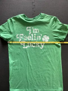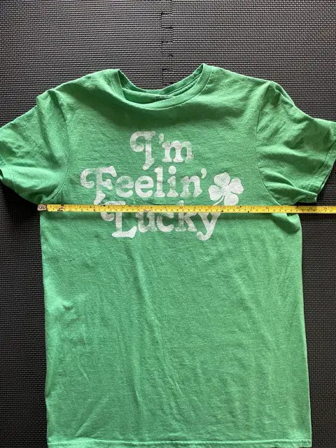 Fifth Sun camiseta verde. De manga corta y cuello redondo. Con leyenda en blanco deslavado “I’m feeling lucky” y trébol. 🍀 Isela para todo tipo de actividades.Talla: SColor: verdeMaterial: 50% algodón y 50% poliéster Cuidado: lavar en máquina Medidas: ancho de sisa a sisa: 46 cm, y largo desde hombro hasta abajo: 66,5 cm