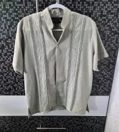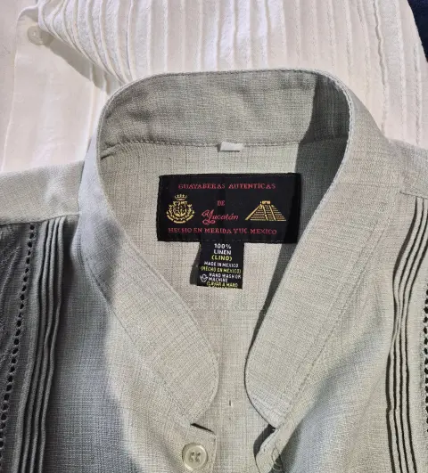 Guayabera hecha en Mérida 100 lino, manga corta talla 40 color verde olivo