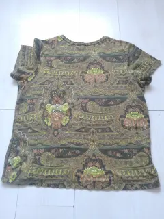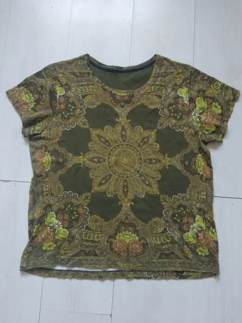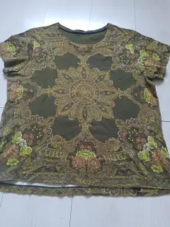 Hermosa playera induista. Hermosa playera induista con tonalidades en verde color de la abundancia, vellas flores de loto