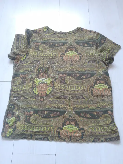 Hermosa playera induista con tonalidades en verde color de la abundancia, vellas flores de loto