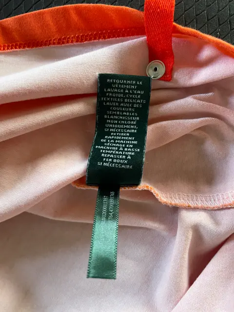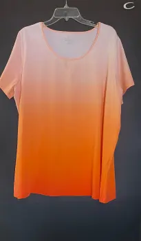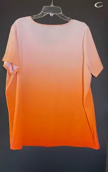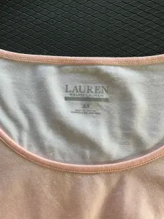 Lauren by Ralph Lauren playera con cuello redondo y manga corta en blanco y naranja con degradado. *tiene una mancha al frente, ver en última foto.Talla: 3XColor: blanco/naranjaMaterial: 95% algodón y 5% elastanoCuidado: lavar en máquina Medidas: ancho de sisa a sisa: 67 cm, y largo desde hombro hasta abajo: 74 cm