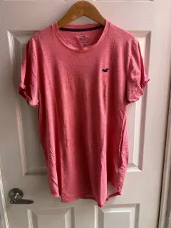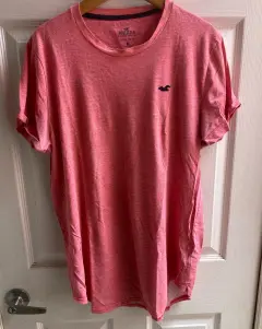 Padrísima playera curved hem tee; marca Hollister, color Rosa, talla M, es amplia, curva en la parte baja, muy fresca y relajada.