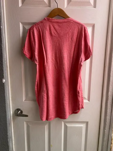 Playera curved Holliter. Padrísima playera curved hem tee; marca Hollister, color Rosa, talla M, es amplia, curva en la parte baja, muy fresca y relajada.