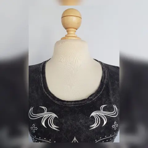 Playera estilo T-Shirt en color GRIS PIZARRA DEGRADADO modelo "Scoop Mineral" c/estampado delantero y trasero en tono PLATEADO y aplique bisutería translúcida, cuello redondo y manga corta. Por la composición de la tela es stretch. Talla M. Dimensiones cms: 38 hombro, 46 axila, 39 cintura, 46 zona baja, 62 largo, 17 largo manga. 100% algodón. P/lavado en casa.***Esta marca maneja prendas de extraordinaria calidad, su algodón es orgánico y soporta ciclos de lavado en máquina sin problemas, no se deslavan los estampados y las telas salen casi sin arrugas.***EL EFECTO DEGRADADO DE LA PRENDA ES MUY BELLO***