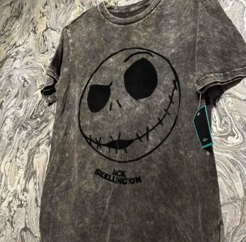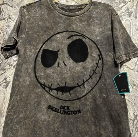 Playera estampada Jack Skellington, talla M. Nueva a estrenar con etiquetas. Marca: Disney. Color: gris y negro.
