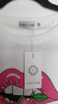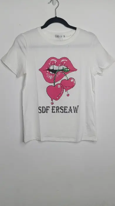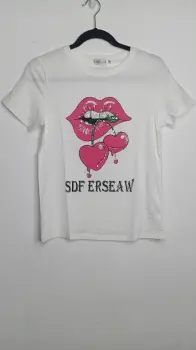 Playera blanca con estampado de labios, con brillos. Nueva con etiqueta. Marca YaoStar, talla S/M. Medidas aprox.39cm de hombros, 44cm de axila, 60cm de largo. Precio $200pesos