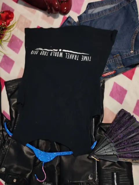 •Te interesa? Escucho ofertas•Deseas varias prendas? armo tu paquetePlayera negra sin mangas, escote pequeño en V con listón. Pequeño estampado al frente de arlequín, estampado en la parte de atrás con lista del Tour.