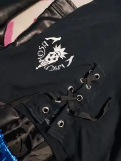 Playera Lacrimosa. •Te interesa? Escucho ofertas•Deseas varias prendas? armo tu paquetePlayera negra sin mangas, escote pequeño en V con listón. Pequeño estampado al frente de arlequín, estampado en la parte de atrás con lista del Tour.