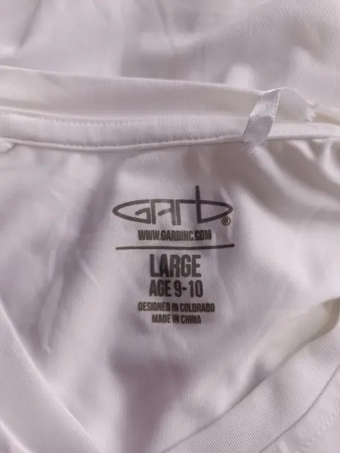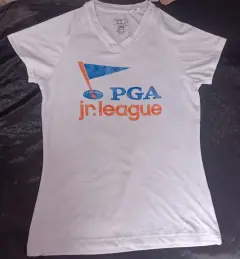 Camiseta polo de la liga PGA JR de Garb Inc. para golf deportivo para jóvenes de mediana edad de 9 a 10 añ PGAreach,mide hombro a hombro 30 cm, axila a axila 38 cm, largo 55 cm marca garb, 92 % poliéster, 8% spandex,trae sucio donde traía la etiqueta de atrás, se quita lavando
