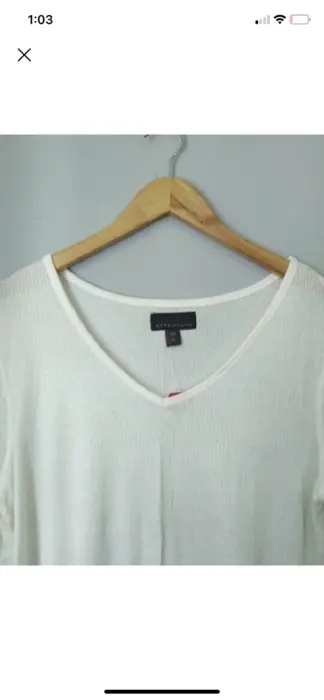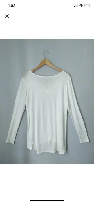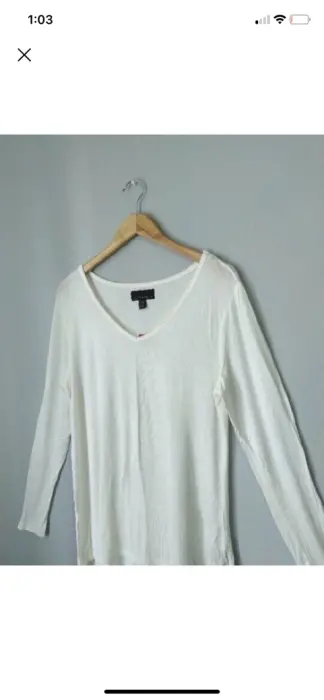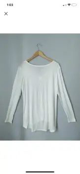 Playera manga larga, color hueso. La tela tiene rayas y es muy agradable (se transparenta un poco). Corte ligeramente en "A"Viene un poco reducida, medidas aproximadas:Pecho 102 cmAncho 115 cmLargo 72 cm