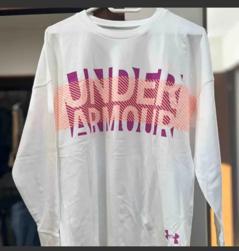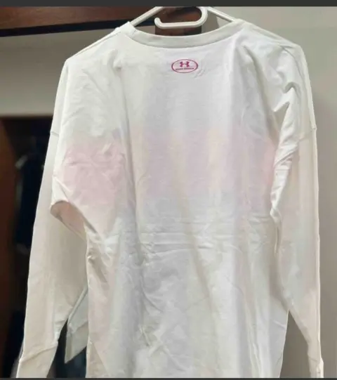 Bonita playera manga larga, blanca con estampado frontal de algodón, la tela estira bastante completamente nueva!
