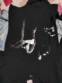 •Te interesa? Escucho ofertas•Deseas varias prendas? armo tu paquetePlayera básica negra, manga corta cuello redondo. No transparenta (algodón), ligero stretch. Estampado "Santa Sabina"