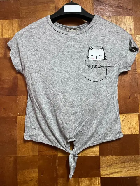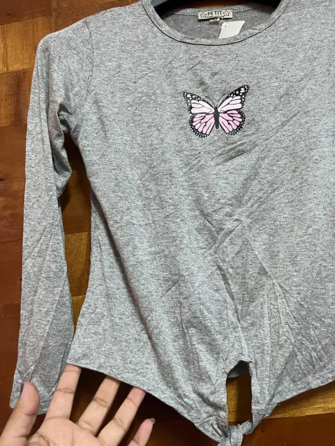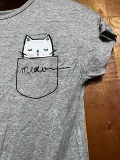 Ambas playeras gris y estampadas gato y mariposa con manga larga y corta la del gato. Para edad entre 5-7 años Suave y ligera la tela