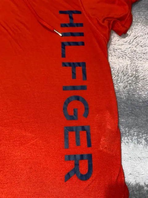 Playeras TH. Sin detalles. La naranja (casi rojo) como que empieza a hacerse bolitas, aun no las tiene, le falta una patita a la jareta esta super padre. La blanca sin detalles.
