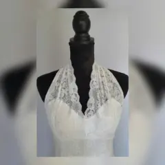 Tank Top corte Halter apliq Encaje BLANCO. Tank top color BLANCO POLAR c/ribete de encaje zona busto, corte tipo halter y copas preformadas p/mejor ajuste. Talla G. Dimensiones cms: 42 axila, 38 cintura, 45 zona baja, 61 largo. 95% algodón, 5% elastano. P/lavado en casa.*POR LA COMPOSICIÓN DE LA PRENDA ES STRETCH PERO NO COMO P/SUBIR A LA SIG TALLA*