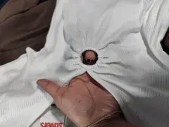 Top escote circular. Playera corta blanca (Top), escote en V, con un círculo (es un aro). Tela rib, stretch, amolda al cuerpo. Un básico. 👌😊 Talla Ch, posible M.