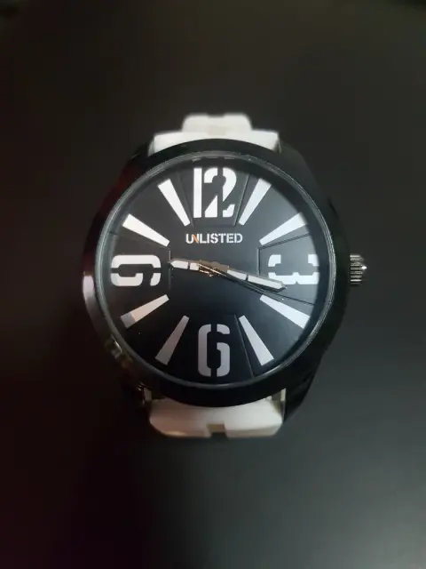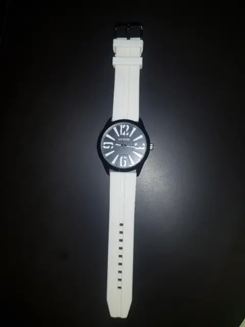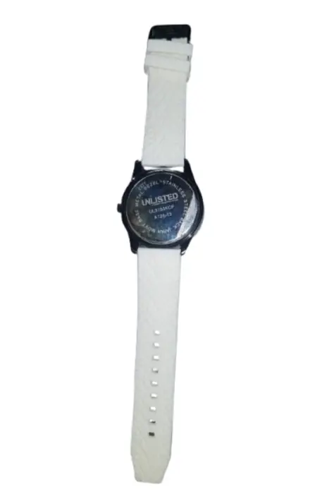 Lindo de reloj de moda unisex carátula grande de la marca Unlisted de Kenneth Cole correa de goma en color blanco