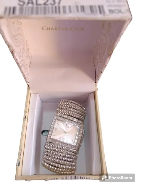 RELOJ CHARTER CLUB CON CUBOS DE ZIRCONIA,AJUSTABLE,TIPO PULSERA