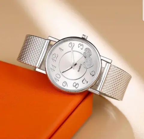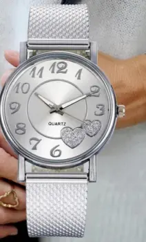 Reloj de pulsera, con correa de silicona, diseño con fondo de corazón .Reloj en color plateado.
