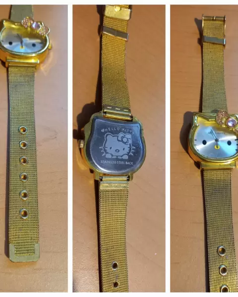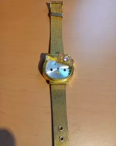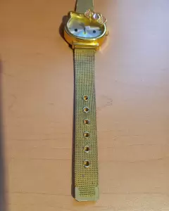 Reloj de Hello kitty correa metálica acabado dorado, funcionando al 100 con pila nueva