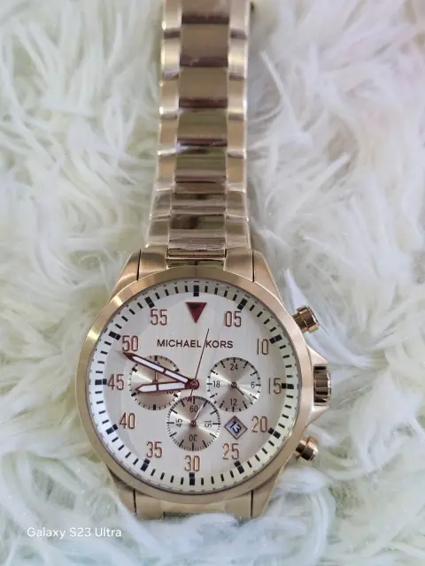 Reloj Michael Kors MK8491 DoradoReloj de caballero jamás usado solo ha estado guardado por lo cual no tiene pila, pero se manda trabajando, no tiene su caja original ya que es de mi colección personal.Cualquier duda quedó a la orden.