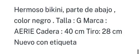 Bikiny parte baja , color negro , Marca : AEIRE TALLA: L NUEVO CON ETIQUETA