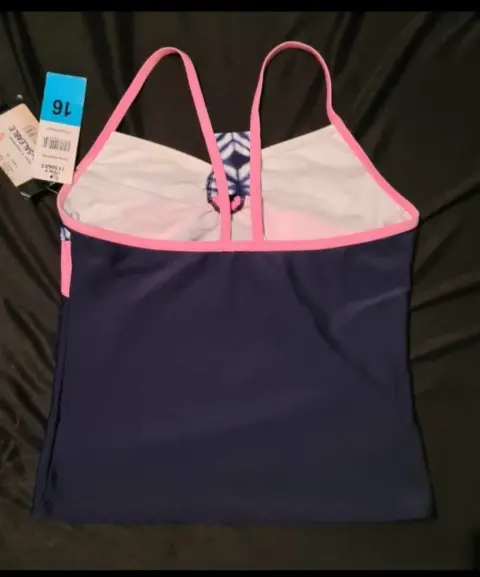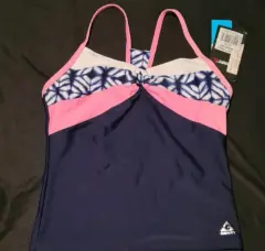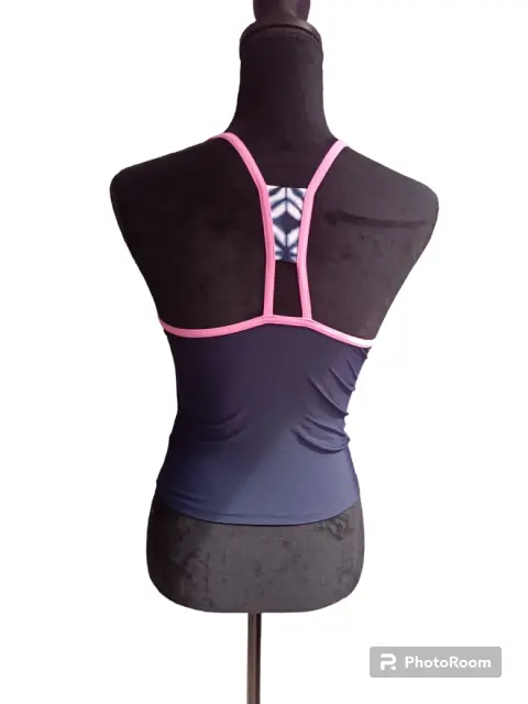 PARTE SUPERIOR TRAJE DE BAÑO. BIKINI PARTE POSTERIOR DE TRAJE DE BAÑO, COLOR AZUL MARINO CON BLANCO Y ROSA, NUEVO, CON ESCOTE EN FORMA DE CIRCULOEN EL PECHO, CRUZADO PARTE DE ATRAS,TALLA S/XS, MARCA GERRY,47 CM DE LARGO,PECHO 72CM SIN ESTIRAR, NUEVO, MARCADO TALLA 16