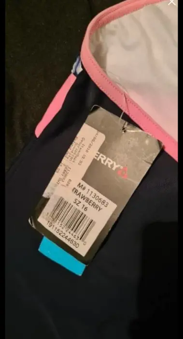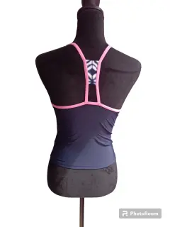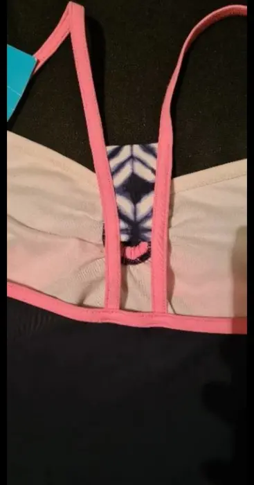 BIKINI PARTE POSTERIOR DE TRAJE DE BAÑO, COLOR AZUL MARINO CON BLANCO Y ROSA, NUEVO, CON ESCOTE EN FORMA DE CIRCULOEN EL PECHO, CRUZADO PARTE DE ATRAS,TALLA S/XS, MARCA GERRY,47 CM DE LARGO,PECHO 72CM SIN ESTIRAR, NUEVO, MARCADO TALLA 16