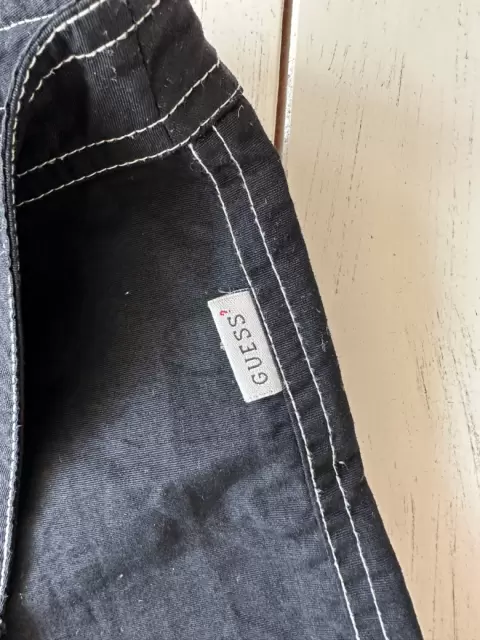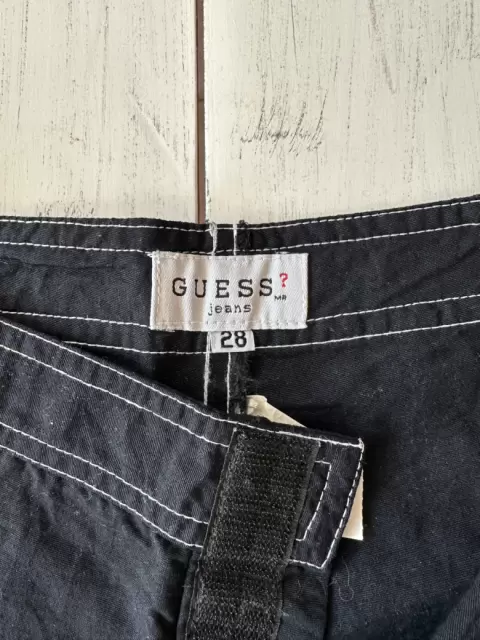 Short negro Guess. Short negro para la playa/alberca, tiene Velcro para cerrar, un bolsillo pequeño lateral. No es stretch.Talla: 28 Medidas: 36 cm de cintura, 45 cm de cadera, 23 cm de tiro, 28 cm de largo.En la entrepierna se ve en foto el desgaste.