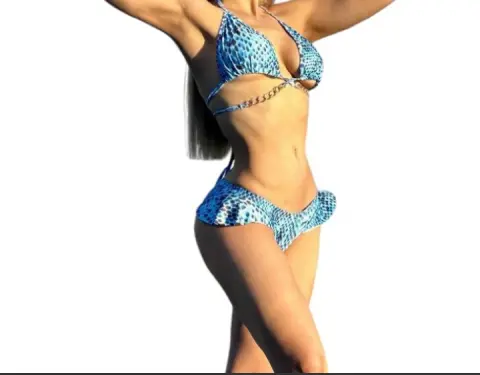 Traje de baño azul con cadena. Traje de baño, parte superior con cadena ycruce para lucir tu cinturaBikini con detalle de Olán en los costados para brindar volumen en caderaForro en la parte del frente para mayorcomodidad y seguridadUnitalla: 3,5,7,9