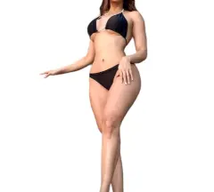 Traje de baño negro con cadena. Top con cadenaDetalle de cadena en bikiniCon forro en la parte del frentepara mayor comodidad y seguridadUnitalla abarca 3,5,7,9