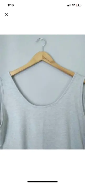 Playera gris claro, con escote en la espalda ideal para hacer ejercicio.La tela es ligera y suave.Medidas aproximadas:Pecho 104 cmAncho 102 cmLargo 69 cm