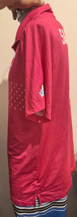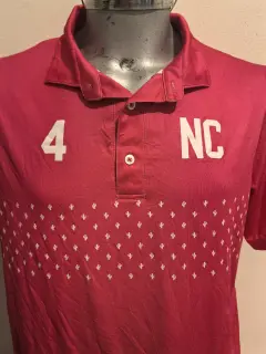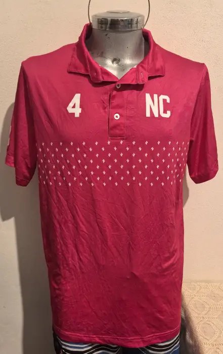 Playera deportiva GARB. Playera deportiva tipo polo, marca GARB, talla mediana. Color es rosa con blanco. Tela cómoda y fresca. 92% poliester y 8% spandex.