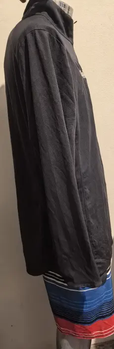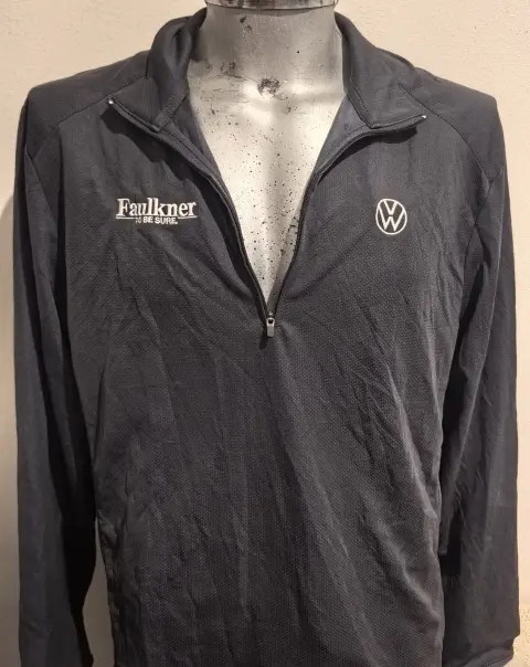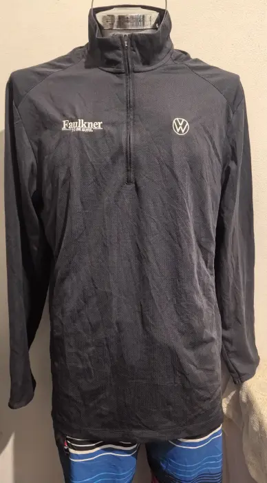 Playera deportiva manga larga, con cierre medio enfrente. Tiene publicidad, es marca PORT AUTHORITY talla grande. 100% poliester. La tela es super cómoda y fresca.