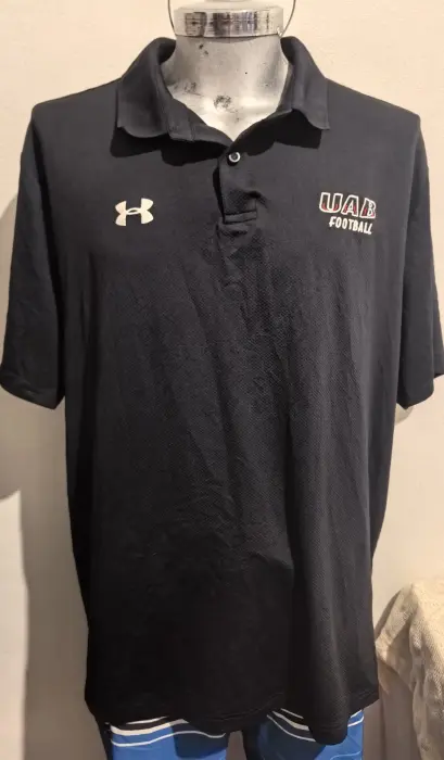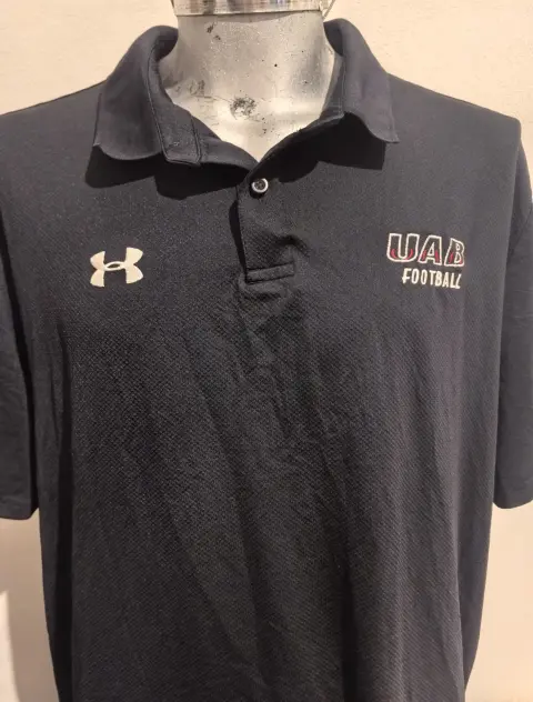 Playera deportiva publicitaria UNDERARMOUR. Playera deportiva tipo polo, con publicidad, marca UNDERARMOUR, talla 2XL. Esta compuesto por un 92% de poliester. Super cómoda y fresca.